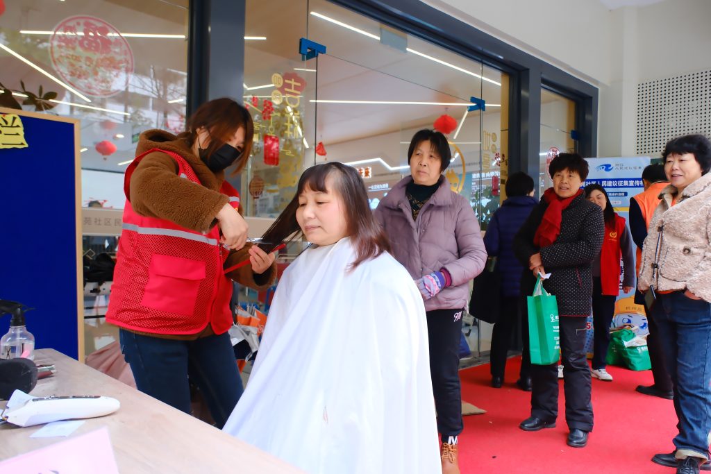而另一边,社区商盟的巾帼志愿者们更是忙得不可开交。“秀枝谢谢你哦,帮我理得真好!”王爷爷口中的秀枝经营着一家小理发店,自己既是老板又是理发师,听说社区需要巾帼志愿者,她毫不犹豫关店一天来进行志愿服务,帮有需要的爷爷奶奶们免费理发。除了秀枝,还有许多女同志,她们化身为贴心的“雷锋使者”,为居民们提供磨刀、公益红娘、口腔义诊、反诈宣传等多项便民服务。这些服务不仅实用,更是传递着社区的关爱和温暖,让雷锋月和妇女节变得更加特别和难忘。