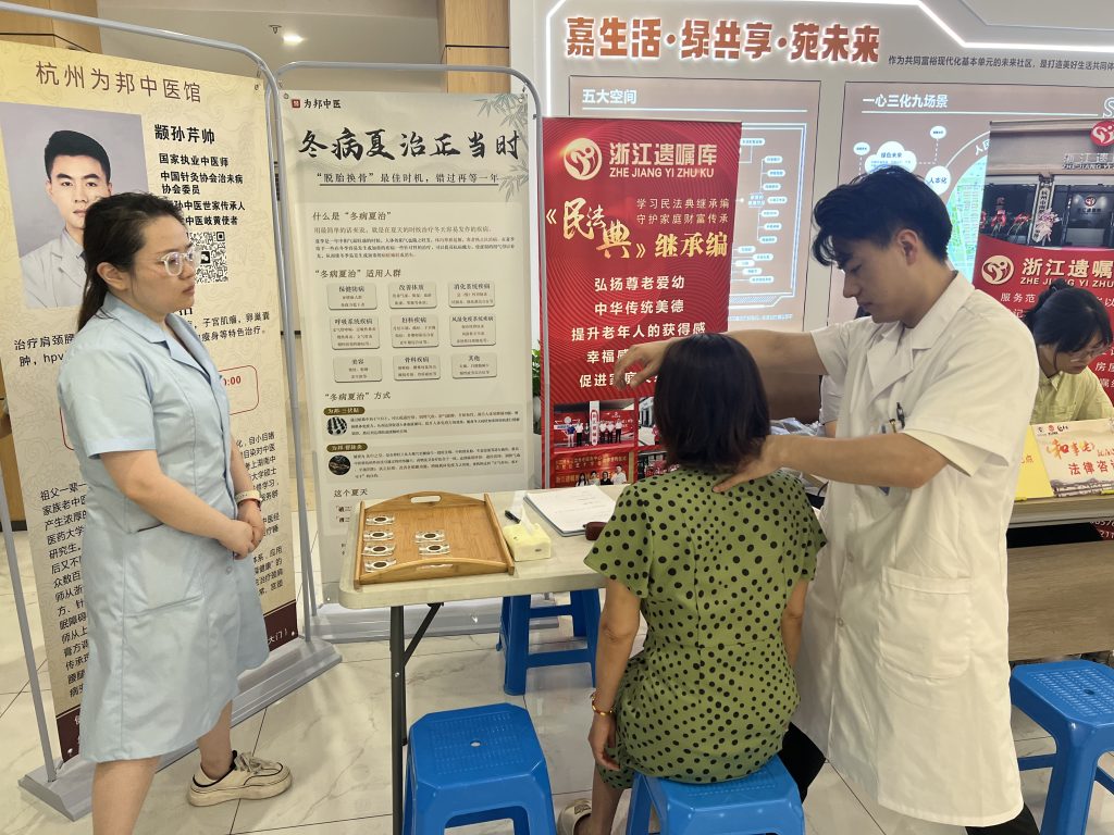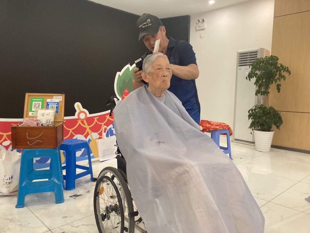 活动现场来了许多有需要的老年人和困难群体,在志愿者的引导下体验各项服务。理发、磨刀、洗眼镜、修理小家电、中医推拿等服务备受欢迎,还有专业人员提供法律知识科普及咨询,除此之外,为了迎接初伏的到来,社区还与中医诊所合作免费为居民提供贴三伏贴、测量血压等有益健康的服务。
