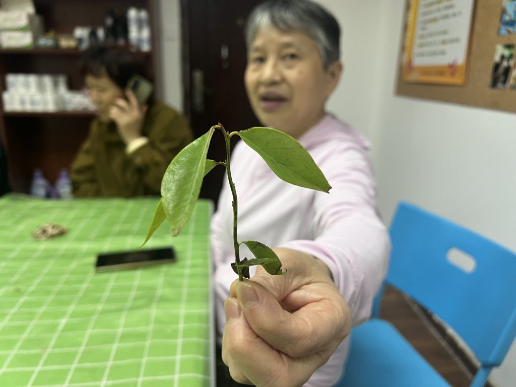活动现场除了一盆盆绿植,还有一抹特殊的橄榄绿,嘉绿苑社区退役军人服务站的志愿者也来到现场,参与此次的绿色活动,退役军人陈景顺更是一大早便来帮忙,搬花、布置场地。
