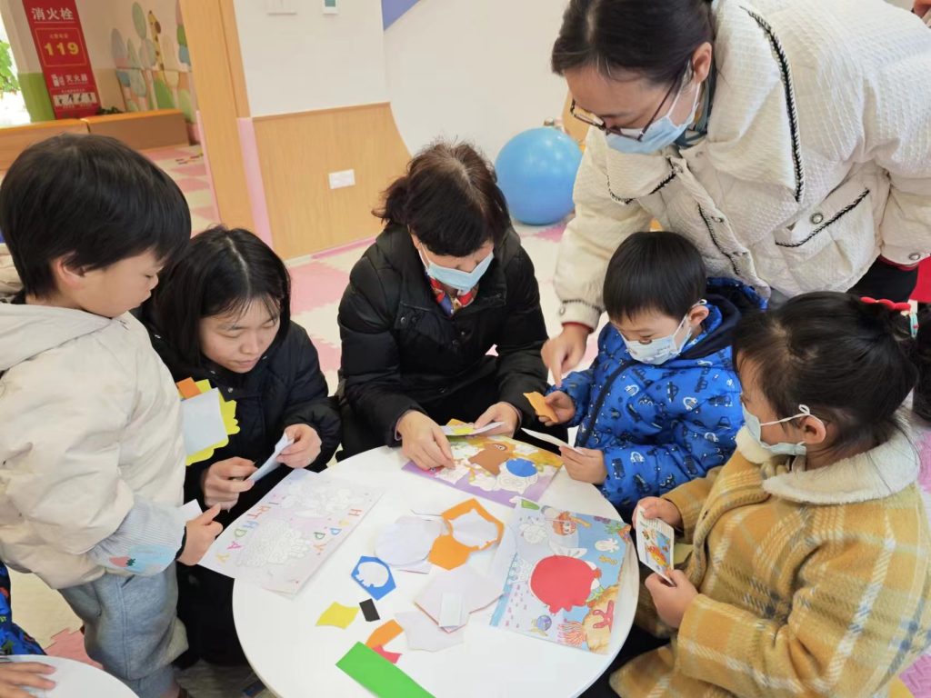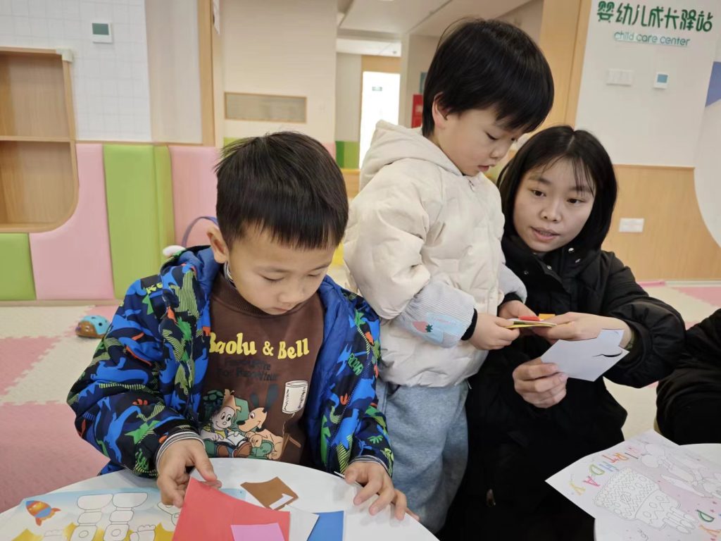 嘉绿苑未来社区民生综合体内,一场由嘉绿苑社区社会组织服务中心举办的亲子手工彩纸粘画活动正如火如荼地进行,这里,彩纸飞舞,胶水涂抹,剪刀咔嚓咔嚓作响,一片欢声笑语,简直比过节还热闹!
