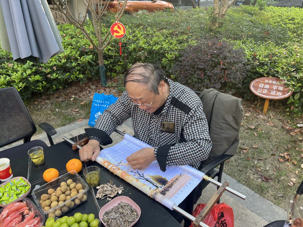 由于前两年疫情的影响,王叔叔的兴趣小组暂停了许久,这不,刚忙完了亚运会亚残运会吉祥物绣制的王叔叔,准备召回他的老徒弟、老邻居们,大家一起聚聚,继续在社区里重拾他们的兴趣。