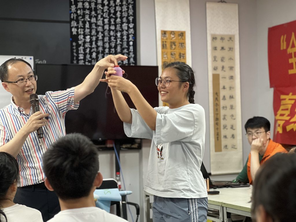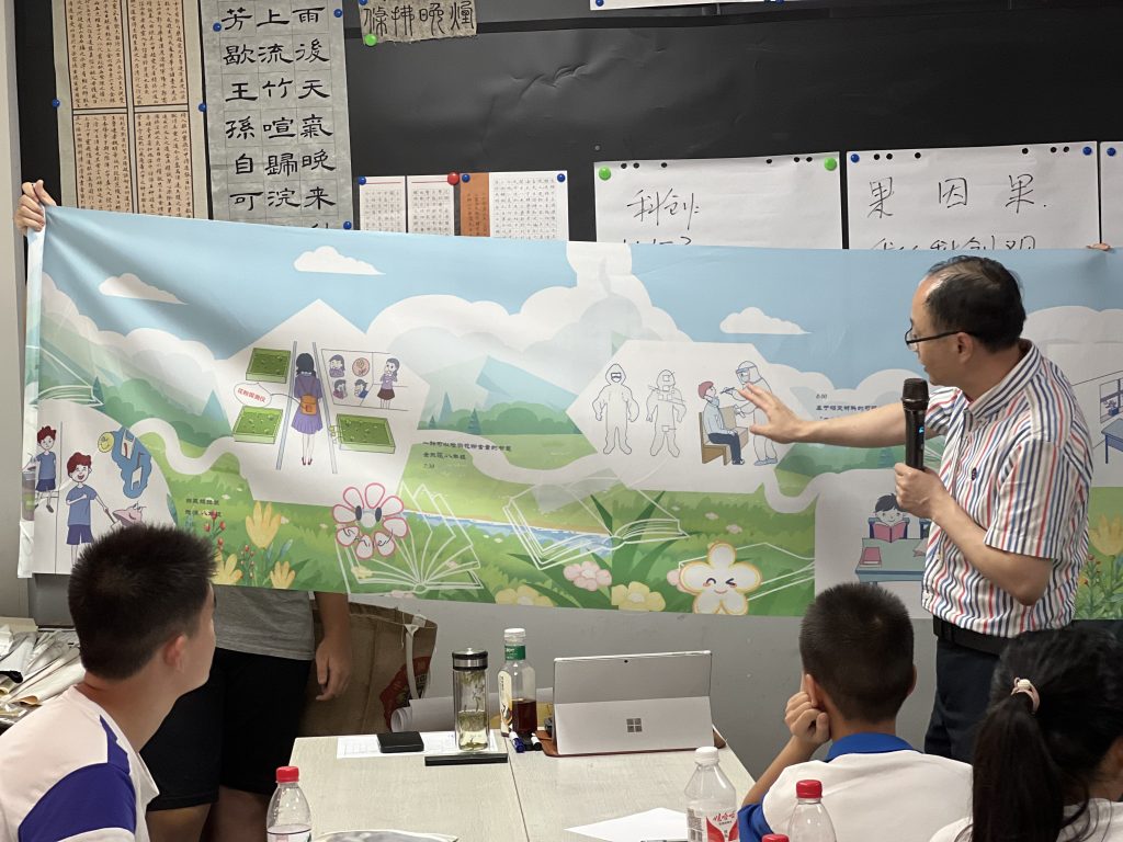 接着,施老师给同学们展示了以往学生自己创造出来的产品:方便破袋的垃圾袋、根据温度变色的线、快速降温杯、茶包自动分离杯等等,以实际案例作为引导,让同学们明白生活中任何一样物品都具有再创新的可能。最后同学们发挥丰富的想象力和创造力,在农业、仓储、安防、家居、无人驾驶、航空航天等方方面面都提出了自己的奇思妙想,如发明仿生机械手帮妈妈叠衣服、使用人工智能辅助火箭发射等等。同学们对新鲜事物拥有无穷的好奇心,这份热情也将在他们的成长过程中埋下一颗种子,未来的某一天或许会在他们的人生路上生根发芽。