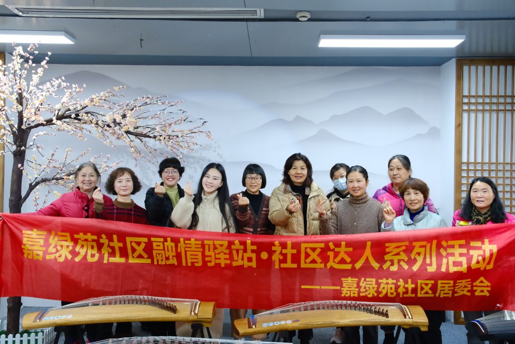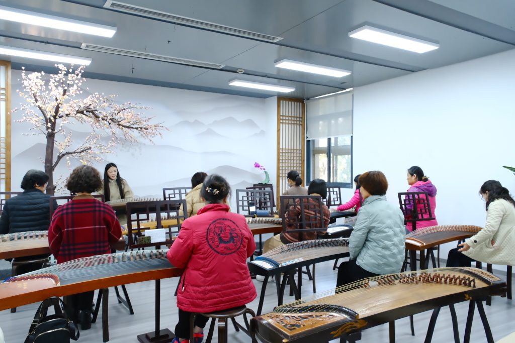 “学无止境,老而弥坚“,老人也可以培养自己的兴趣,恰巧嘉绿苑社区民生综合体众创空间内有社区达人周晓依老师的古筝培训班,于是社区专门邀请周老师为老人们开展古筝公益课。周老师自幼练琴,后在中央音乐学院进修,在各类比赛如北京器乐大赛中获得多次优秀指导教师的称号,现在以每周一次的频率为年龄50岁以上的社区居民免费教授公益课。